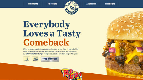 Red Robin's 'Bring My Burger Back' campaign gave customers the opportunity to vote retired menu items back into the Red Robin kitchens with the chance to win prizes as they voted.