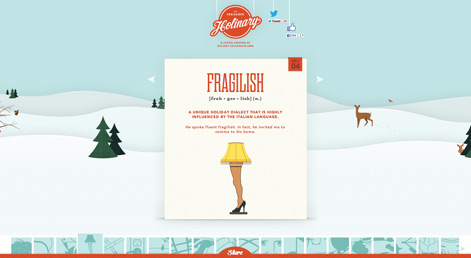 After having built Periscope's holiday site in 2011, I requested to work on the 2012 version. The concept was to create a set of (invented) vocabulary words based off a holiday theme.